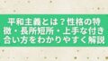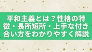 平和主義とは、ただ「おとなしい性格」というだけではありません。争いを避けたい気持ち、周囲とうまくやりたい思い、空気を乱したくない感覚など、いくつもの要素が重なって表れやすい性格です。そのため、協調性が高くて安心感を与える長所がある一方で、自...